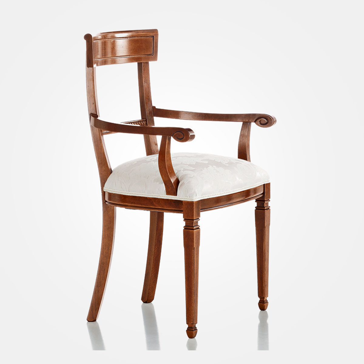 Klasszikus vonalvezetésű szék, bükk vázzal, kárpitozott ülő- és háttámlával. Többféle pácszínnel kapható.