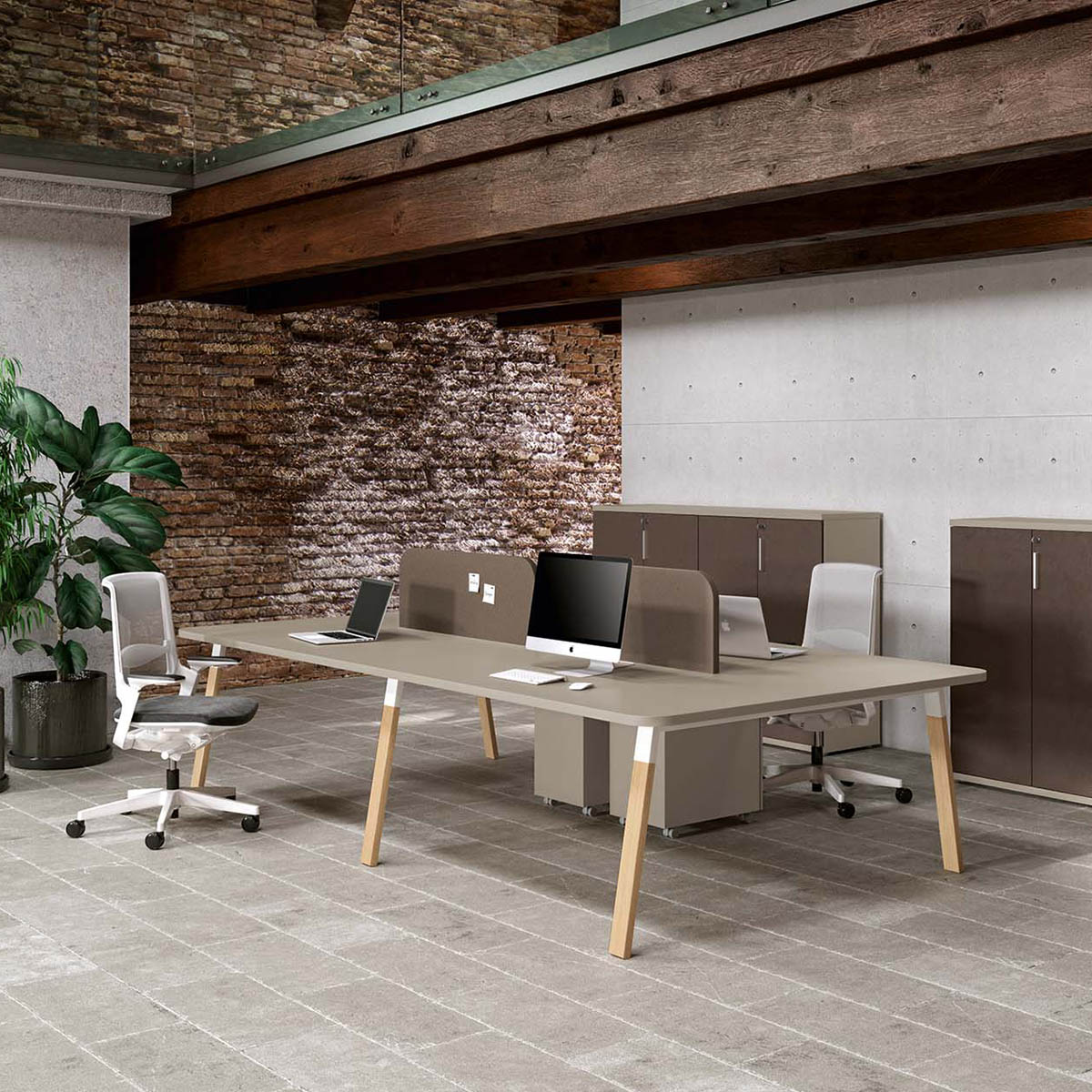 Egy jól kombinálható, nagy elemvariációval rendelkező bútorcsalád tölgyfa lábú változata az Atreo Wood, mely melaminált asztalappal, változatos színvilágban kapható.