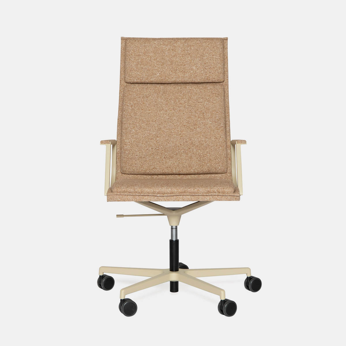 A minimalista vonalú szék látható csavarozások nélkül készült. Ritka megoldás, hogy a fém részek és a kárpit is azonos színekben választhatók. A székcsalád több háttámla magasságban, láb- és kárpitozás változatban kapható, a  kifinomult hálóstól, a kényelmesen párnázotton át, az elegáns hőformázott ülő- és hátlapos változatig.