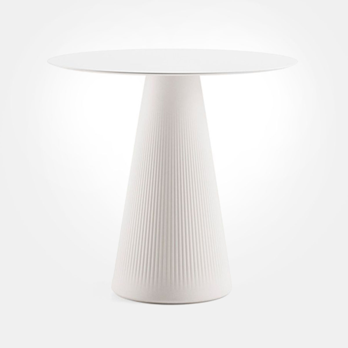 Kültéren és beltéren egyaránt használható asztal, 4 színben választható polietilén lábbal, plisszírozott kialakításban, HPL lappal.