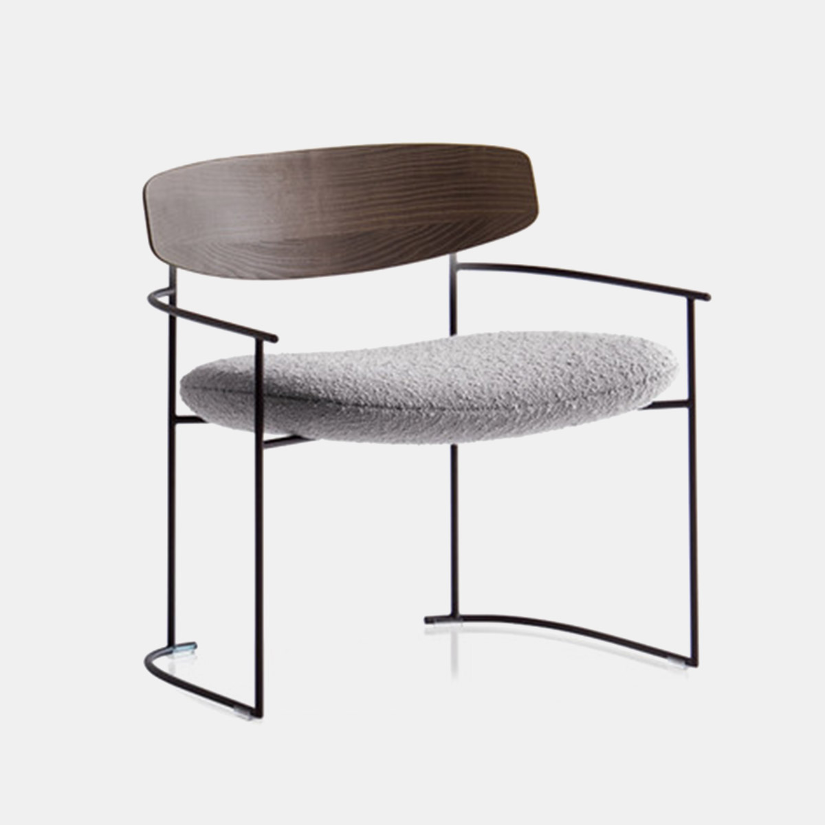Ülőbútor család fotel tagja, fém vázzal, Irokko fa pácolt háttámlával.Kültéri változatban is kapható!