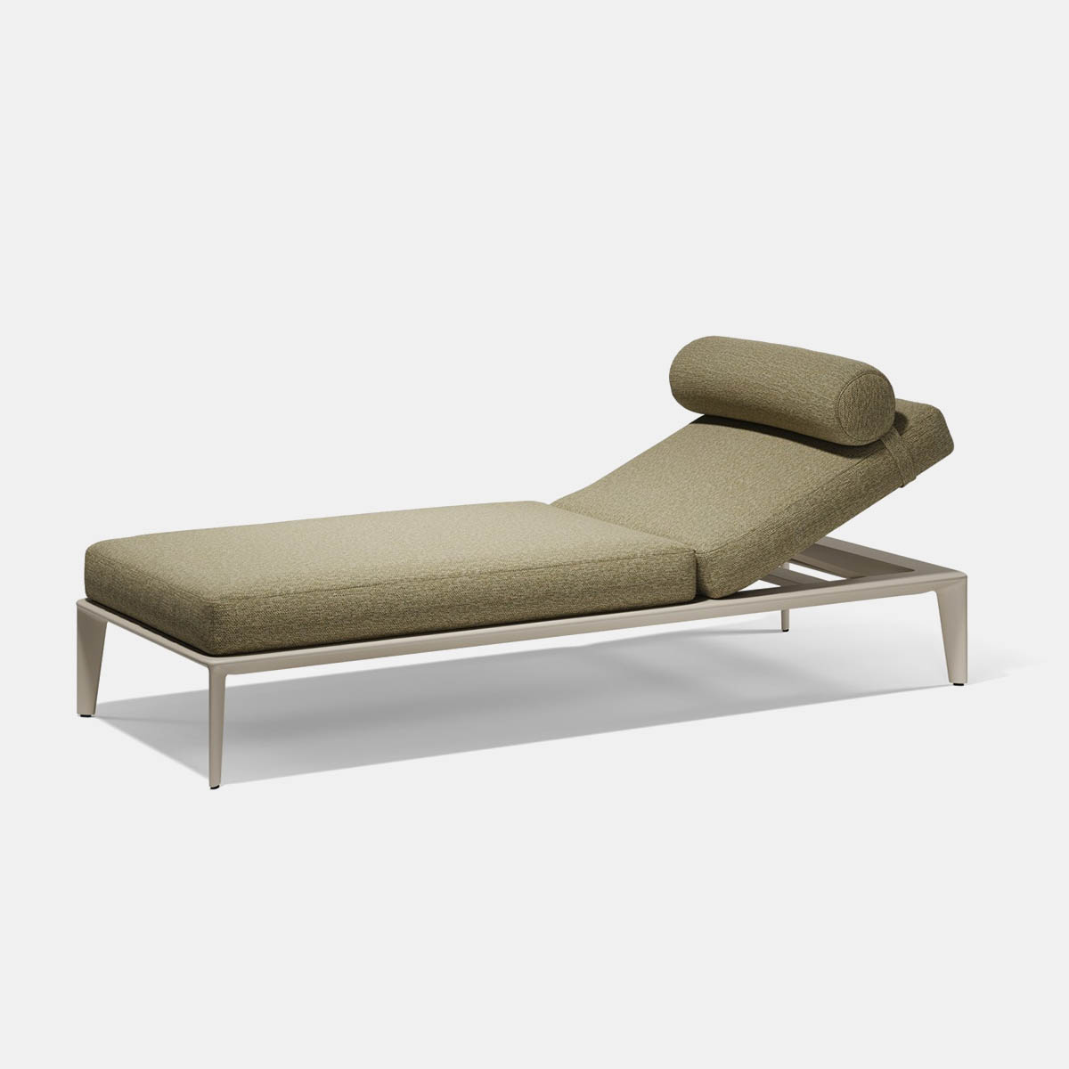 Tervező: Jean-Marie Massaud A Pasadena nyugágyat a lágy vonalú alumínium profilok és extra kényelem jellemzi. Kültéri bútor vízlepergegő kárpittal és vízáteresztő szivacsozással.